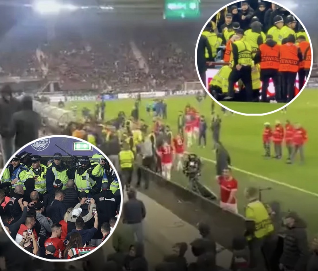 NOTTINGHAM FOREST FANS FIGHT AND LEAVE LEEDS UNITED PLAYER BLEEDING FROM HIS HEAD IN HORRIBLE SCENES,GAME TRUELY GONE